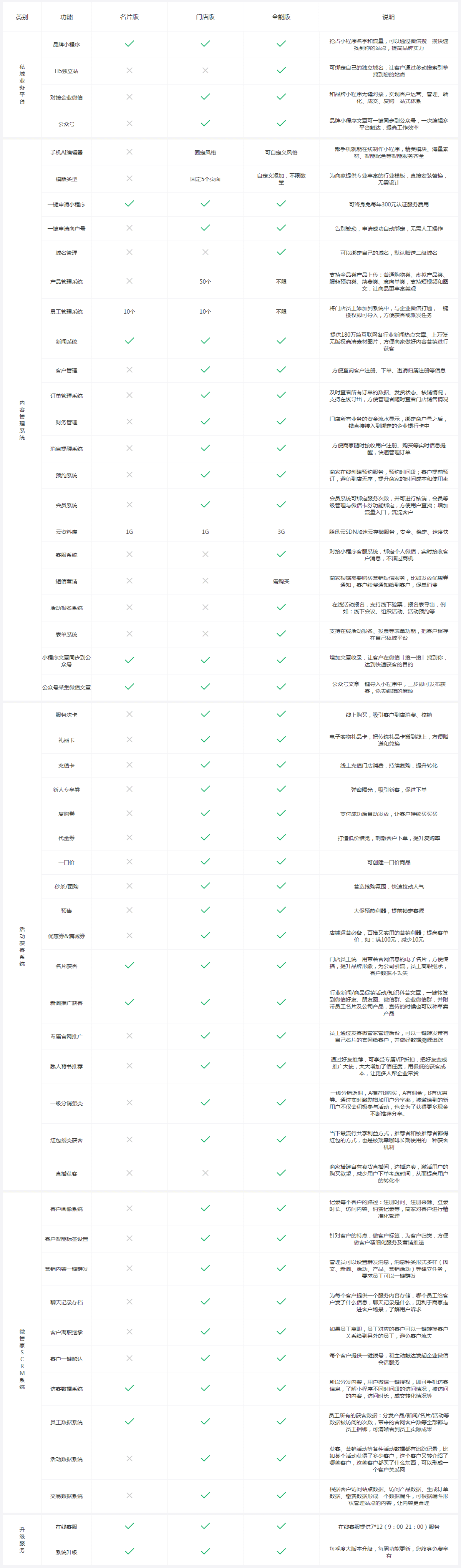 | 温馨提示: 以上价格是自助建站套餐,网站模板编辑和网站内容上传发布由甲方负责(乙方[ 沃来邦 ] 不提供网站内容发布、首页轮播图设计等服务,如需此服务价格另计)。 服务类型:私域营销获客手机AI建站 | |||