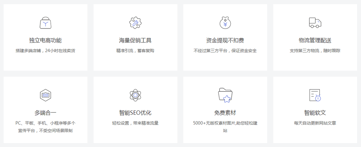 根据网站不同版本及配置计算出总价,价格透明,无其它隐性费用,放心建站。