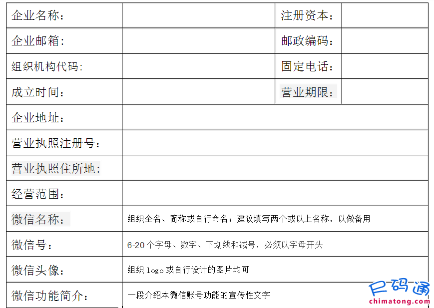 企业微信公众注册账号申请理由需要准备什么资料_所需资料表